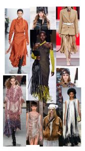 Já as franjas, proporcionam leveza e movimento, seja nas peças de roupa, calçados ou acessórios.