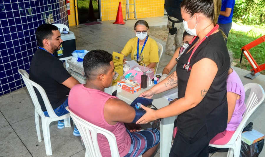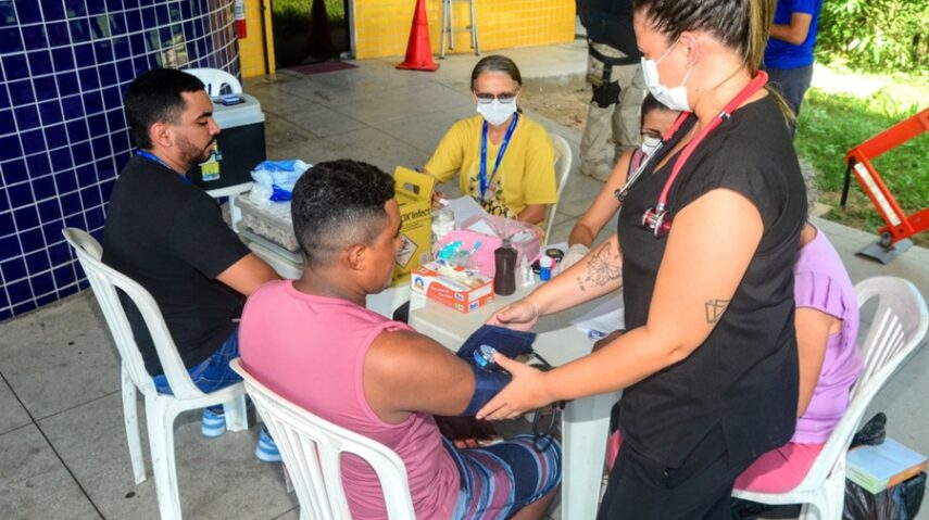 Entre os serviços ofertados na ação: testagem rápida para ISTs; verificação de pressão arterial, teste de glicemia e vacinação, além de orientações de saúde. Um trabalho prestado pelos profissionais da Unidade Básica de Saúde Maria Neide da Silva Souza, do bairro Dom Jaime Câmara.