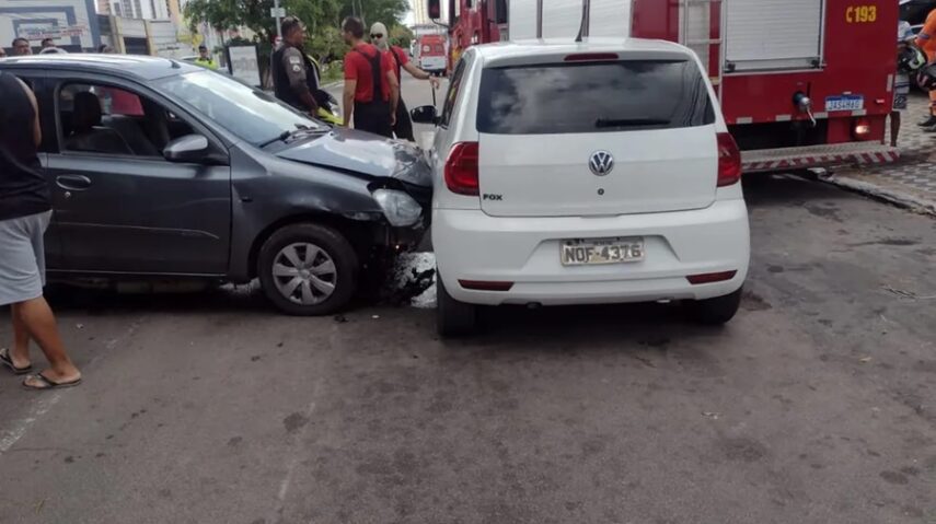 Um acidente na manhã deste sábado (25) envolveu quatro carros e uma moto no cruzamento da Avenida Alexandrino de Alencar com a Rua Olinto Meira, no bairro do Alecrim, em Natal. Duas pessoas ficaram feridas.