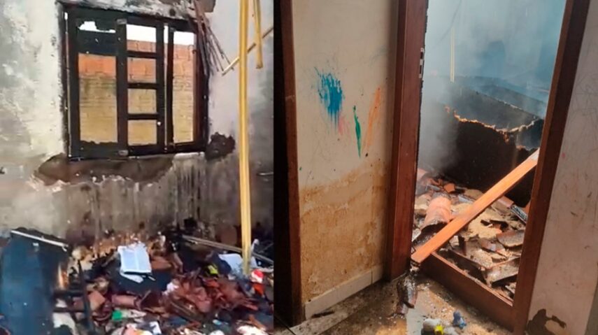 O incêndio destruiu o quarto do casal. Por sorte, ninguém se feriu, uma vez que a casa estava vazia no momento do incêndio.