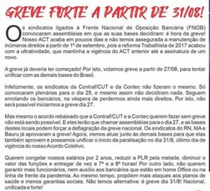 “Eles convocaram plenárias para o dia 25, e mesmo assim não decidiram nada. Seguem enrolando os bancários, na véspera de perdermos ainda mais direitos. Por isto, não será possível iniciarmos a greve dia 27”, diz o texto.