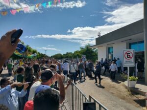 A comitiva presidencial chegou ao Aeroporto Dix-Sept Rosado por volta das 9h10 e foi recepcionada por apoiadores.