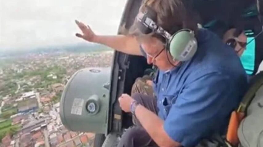 “Fizemos um sobrevoo em parte da área atingida, não conseguimos avançar, tentei pousar também, mas a recomendação dos pilotos era que, tendo em vista a consistência do solo, poderíamos ter um incidente. Então, resolvemos não pousar”, disse Bolsonaro em coletiva de imprensa.