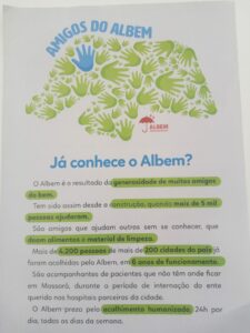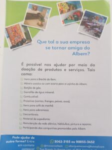 “Podemos fechar parceria com alguém que se comprometa a realizar a pintura da nossa instituição, por exemplo. Nós estamos em busca de parceiros que sejam nossos amigos, que conheçam o nosso trabalho e que tenham prazer em nos ajudar”, comenta.