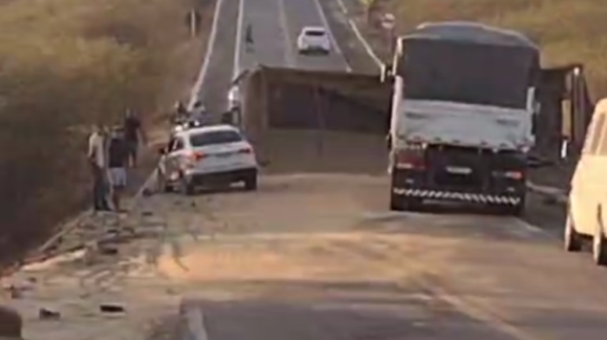 Carreta tomba e interdita BR-427 no interior do RN
