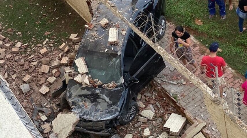 Um carro bateu, derrubou um muro e invadiu um condomínio no bairro 13 de maio, em Mossoró, no Oeste potiguar. A colisão aconteceu por volta das 16h30 desta quarta-feira (4).