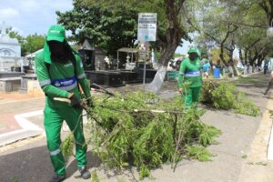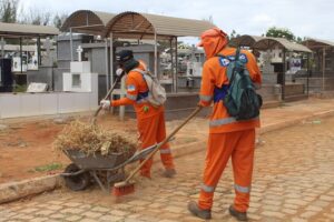 A preparação é para receber o público no Dia de Finados, em 2 de novembro. As equipes trabalham no Cemitério São Sebastião (Centro) e Cemitério Novo Tempo (Aeroporto).