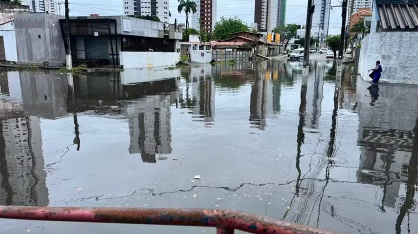 Em Parnamirim, na região metropolitana, também foi registrado alagamento na Rua Antônia de Lima Paiva, no bairro Nova Esperança.