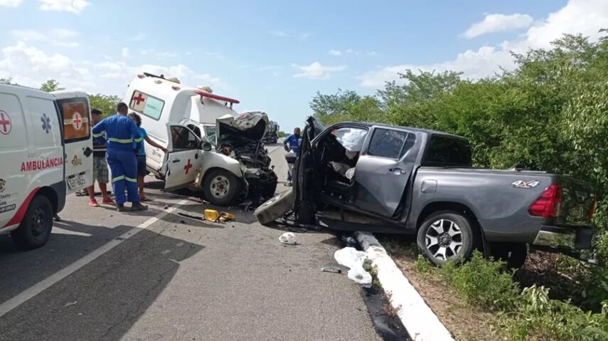 Uma pessoa morreu e outras duas ficaram feridas em um acidente na tarde dessa quinta-feira (3) entre uma caminhonete e uma ambulância na BR-304, na altura de Mossoró, na Região Oeste do Rio Grande do Norte.