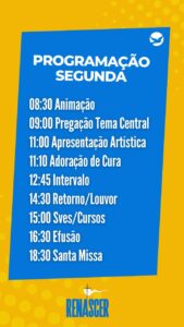 A programação oferece momentos de aprofundamento da fé, animação, shows e festas temáticas, que oportunizam lazer saudável para toda família. Crianças de todas as idades podem participar do evento no espaço reservado para elas, o Renascer Kids.