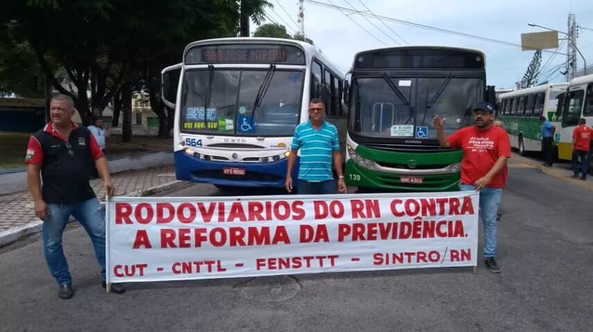 Contra reforma da previdência, rodoviários param ônibus em Natal