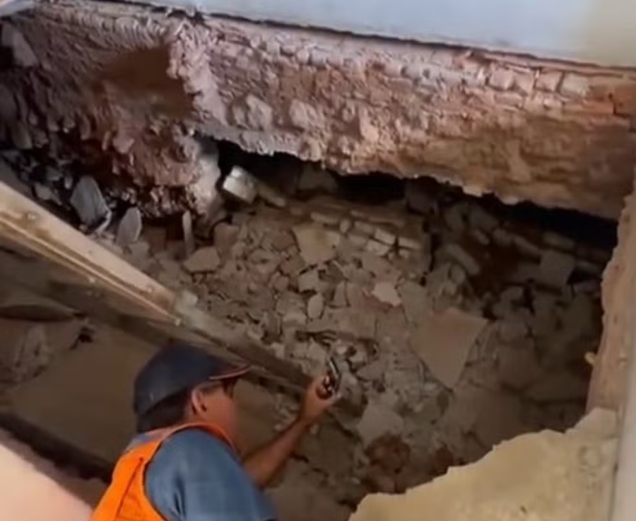 O caso aconteceu no bairro Baixa da Alegria. De acordo com o Corpo de Bombeiros, uma equipe enviada ao local constatou que o piso cedeu, formando um vão.