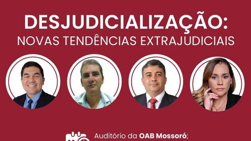 Com o tema ‘Desjudicialização: Novas tendências extrajudiciais’, a OAB Subseção de Mossoró, através da sua Comissão de Direito Imobiliário, Condominial e Notarial da OAB Mossoró estará promovendo um curso para debater o tema nesta quarta-feira, 31 de outubro. O evento acontecerá a partir das 18h30, no auditório da sede local da entidade e contará com palestrantes renomados com vasto conhecimento sobre o tema. De acordo com a sua organização, essa é uma ótima oportunidade de mais uma capacitação relevante em sua carreira.