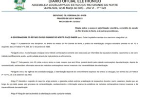Nessa quinta-feira (2), entrou em vigor a lei federal nº 14.443, que garante às mulheres o direito de realizar a laqueadura de trompas sem a necessidade de autorização do marido. No entanto, o deputado estadual do Rio Grande do Norte, Dr Kerginaldo Jácome (PSDB), protocolou um projeto de lei que restabelece a necessidade de autorização do parceiro e aumenta de 21 para 25 anos a idade mínima para a realização da cirurgia.