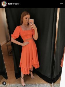 E, na dúvida, pode apostar no monocromático. Essa escolha da Fernanda Borges tá mais do que perfeita: cropped com mangas bufantes + saia midi assimétrica + cor coral que aquece a produ e dá aquela dose certa de impacto que o seu look precisa.