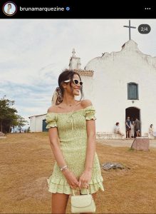 A Bruna Marquezine apostou no vestido romântico, com decote ombro a ombro, perfeito para usar durante todo o verão.