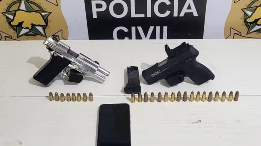 A prisão do suspeito aconteceu ainda na terça-feira, logo após o crime. Na ação policial, foram apreendidas duas armas de fogo: uma pistola calibre 9mm com 58 munições intactas e uma pistola calibre .380 com 17 munições intactas. Também foram recolhidos um aparelho celular e um veículo modelo Ônix.