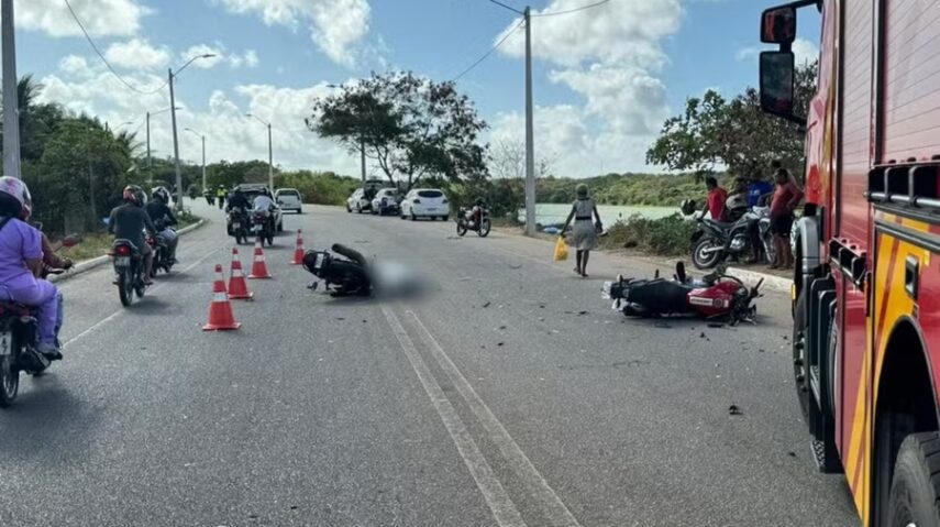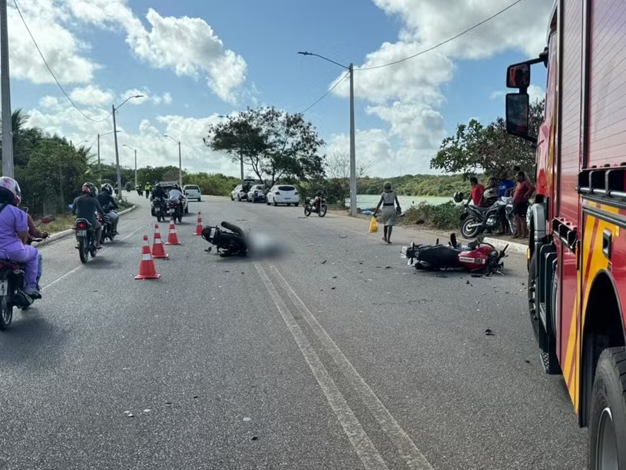Duas pessoas morreram em uma colisão frontal entre motos na avenida Moema Tinoco, próximo à BR-101, na Zona Norte de Natal, na manhã desta quarta-feira (24).