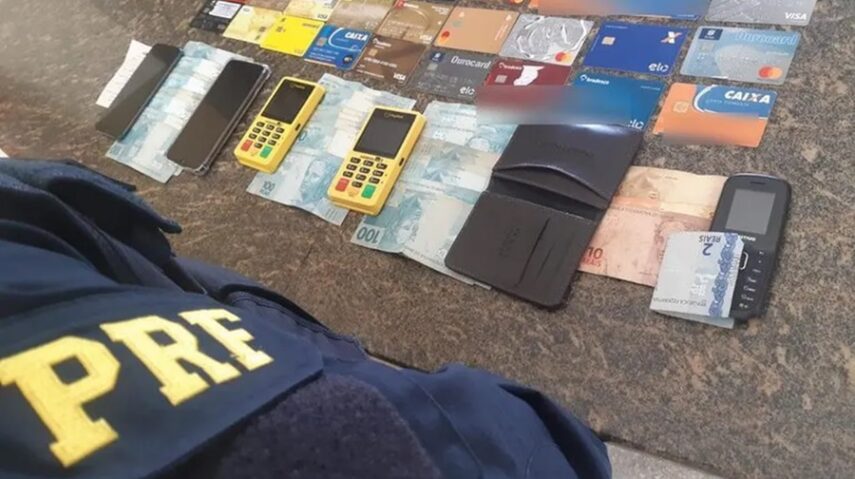 Ao todo, os suspeitos foram flagrados com 34 cartões e R$ 2.872 em espécie.