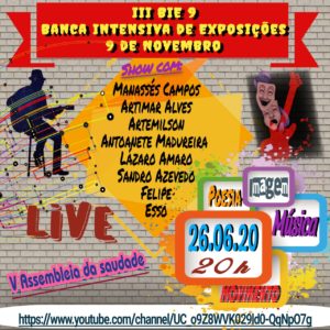 Egressos de vários cursos da Universidade Federal do Rio Grande do Norte (UFRN) promove nesta sexta-feira, 26/6, a Terceira Banca Intensiva de Exposições 9 de Novembro (III BIE 9) reunião de apresentações culturais nas áreas das artes plásticas, música, desenho, poesia.
