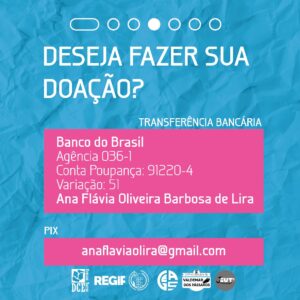 Também são aceitas transações por meio do PIX para a seguinte chave: CHAVE: anaflaviaolira@gmail.com