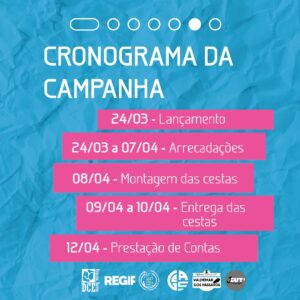 A fome bate à porta, o auxílio emergencial não dá conta, os estudantes precisam entrar na universidade. Por isso, uma parceria entre o Diretório Central dos Estudantes – DCE Romana Barros, a Rede de Grêmios do IFRN (Instituto Federal de Educação, Ciência e Tecnologia do Rio Grande do Norte (IFRN), o Grêmio Estudantil Joaquim Correia, o Grêmio Estudantil Valdemar dos Pássaros, o Grêmio Estudantil Alzira Soriano e a Juventude da CUT, lançam a campanha Páscoa Solidária.