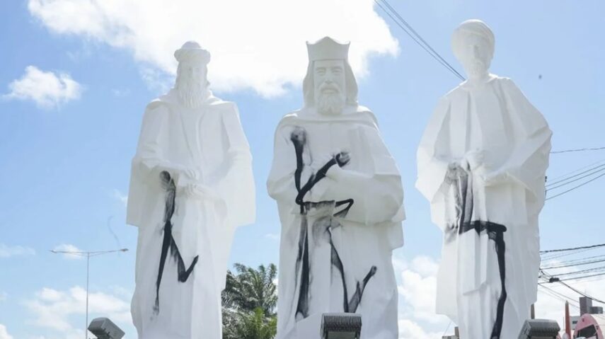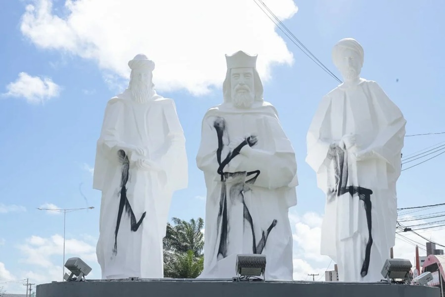 Menos de 24 horas após passarem por um processo de revitalização, as estátuas dos Três Reis Magos, situadas às margens da BR-101, na zona Sul de Natal, foram novamente alvo de vandalismo na madrugada desta quarta-feira (25).