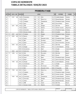 A uma semana do início da fase de grupos da Copa do Nordeste, a Confederação Brasileira de Futebol divulgou a tabela detalhada da competição. Todos os duelos foram definidos, mas houve desdobramento de datas e horários apenas até a quarta rodada do torneio.