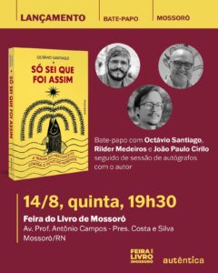 A Feira do Livro de Mossoró será palco, na quinta-feira (14), às 19h30, do lançamento de “Só sei que foi assim: a trama do preconceito contra o povo do Nordeste”, de Octávio Santiago, publicado pela Autêntica no final de maio. A programação inclui um bate-papo sobre o tema com os jornalistas Rilder Medeiros e João Paulo Cirilo.