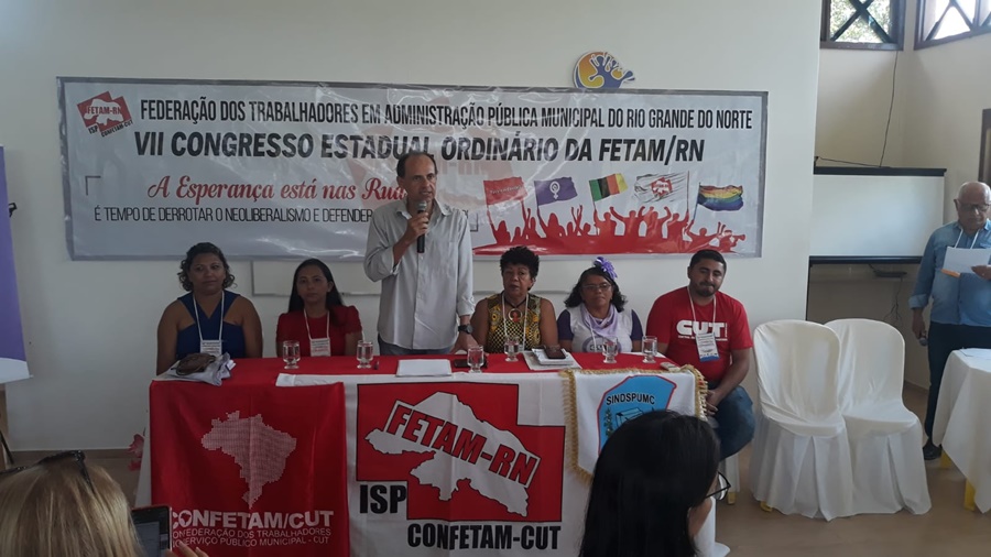 A Federação dos Trabalhadores em Administração Municipal do Rio Grande do Norte está realizando nesta quinta-feira (12/03) e amanhã sexta-feira (14/03) o VII Congresso Estadual Ordinário com o Tema A esperança está na rua É tempo de derrotar o Neoliberalismo e Defender o Serviço Público na cidade de Caraúbas-RN.