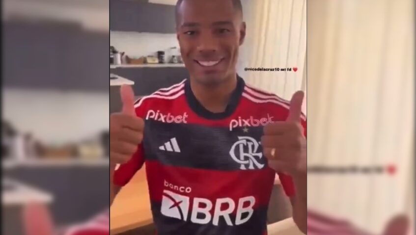 Com uma ação de marketing em conjunto com um dos patrocinadores do clube, Nico De La Cruz recebeu a camisa do Flamengo em casa dentro de uma caixa.