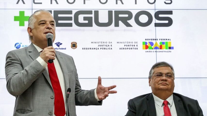O ministro da Justiça e Segurança Pública, Flávio Dino (à direita), disse que a Polícia Federal vai contribuir para a iniciativa com mais policiais nos terminais, o que deve reforçar o turismo no país.