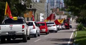 Grupos de direita fizeram uma passeata pelas ruas do centro da cidade até a Praça 7 de Setembro, na frente da Assembleia Legislativa. O grupo criticou restrições impostas pelos decretos estaduais de prevenção à Covid-19 e se disse a favor do trabalho.
