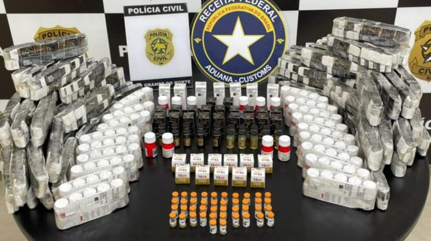 Uma ação conjunta da Receita Federal do Brasil e da Polícia Civil do Rio Grande do Norte resultou na apreensão de esteroides anabolizantes e medicamentos de origem irregular avaliados preliminarmente em cerca de R$ 480 mil. A operação ocorreu na manhã desta segunda-feira (23), em Natal. Um homem de 37 anos foi preso em flagrante.