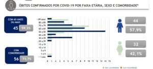 Em contrapartida, as mulheres lideram o ranking de infectados pela doença no estado. De acordo com os dados, 878 mulheres (50,5%) testaram positivo para o novo coronavírus, enquanto 861 homens (49,5%) foram diagnosticados com a Covid-19.