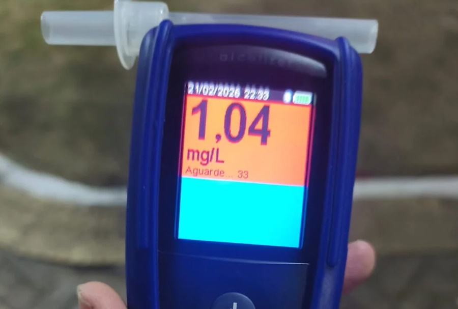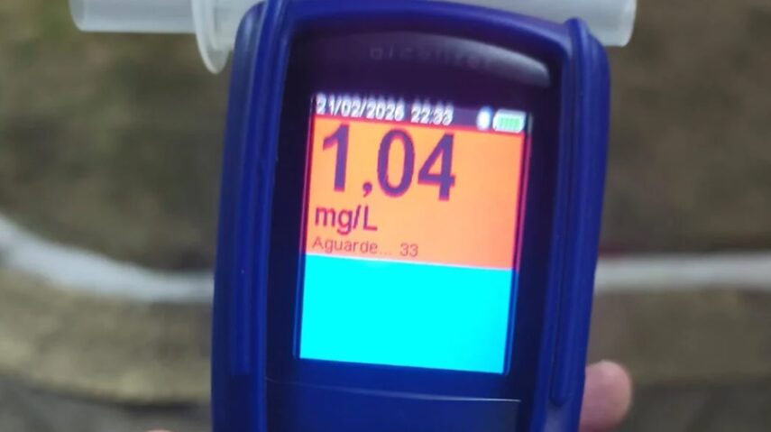 Submetido ao teste do bafômetro, o resultado apontou 1,04 mg/l de álcool por litro de ar alveolar, índice superior a três vezes o limite que configura crime de trânsito, conforme o Código de Trânsito Brasileiro.