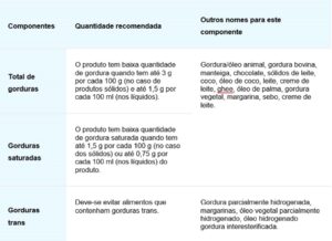 Na tabela a seguir segue a quantidade recomendada para cada nutriente dos produtos, para se manter uma dieta saudável: