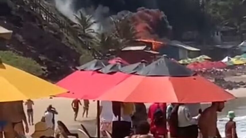Um incêndio neste sábado (19) atingiu uma barraca na Praia do Amor, em Pipa, município de Tibau do Sul. O fogo começou por volta das 12h30 e rapidamente consumiu toda a barraca de praia, gerando preocupação entre os banhistas.