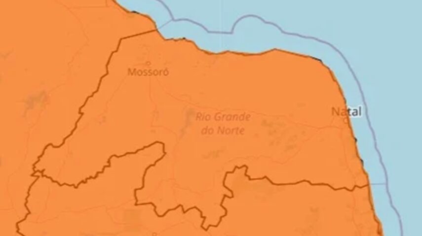 O Instituto Nacional de Meteorologia (Inmet) publicou um alerta para chuvas intensas para todos os municípios do Rio Grande do Norte. O aviso do tipo laranja, classificado como “perigo”, tem início às 9h33 desta quarta-feira (5) e segue até às 10h da quinta-feira (6).