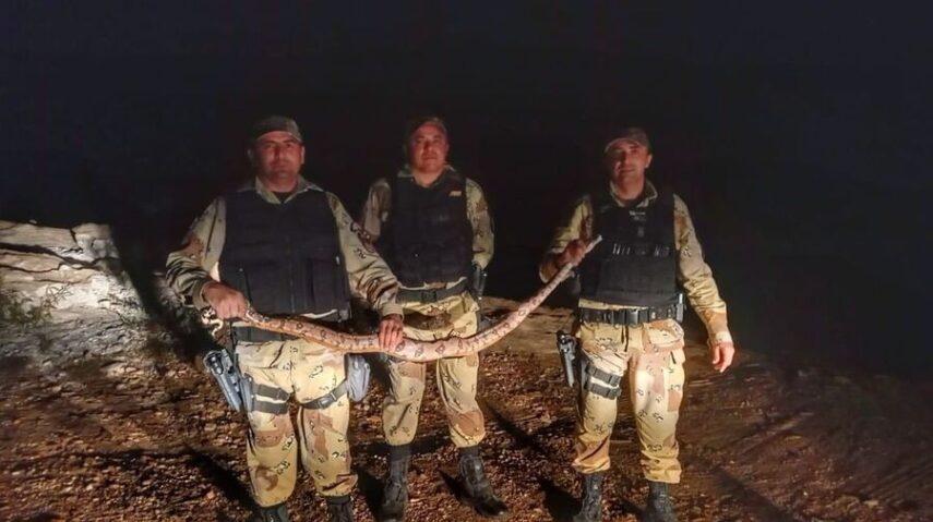 Os policiais militares da cidade de Parelhas, interior do Rio Grande do Norte, resgataram do quintal de uma residência no bairro Maria Terceira uma cobra da espécie jiboia-constritora. Os policiais foram acionados após os proprietários da residência perceberem a presença do animal na propriedade. Caso aconteceu na noite desta terça-feira (3).