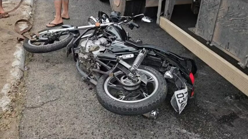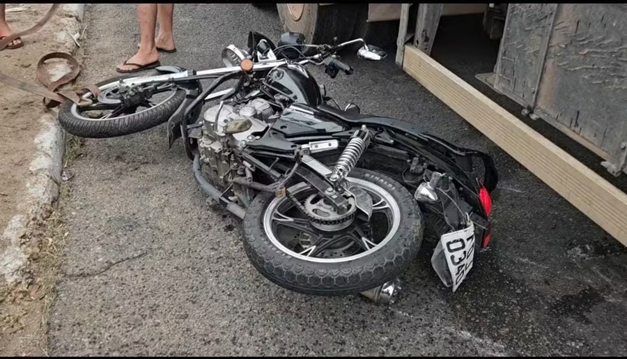 A motocicleta seguia no mesmo sentido e, ao tentar ultrapassar o caminhão pela direita, acabou se envolvendo no acidente.