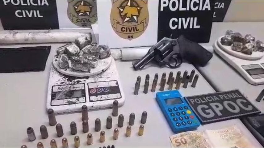 Também foram presos, mas por força de ordem judicial: Iranilson Lucas Sales da Silva, conhecido como “Lucas Cabeção”, de 20 anos; e Edmilson Anselmo da Silva de Lima, o “Queixão”, de 23 anos. Ambos identificados como os autores do roubo e incêndio praticado em um veículo da CAERN, durante os atos criminosos de março. Iranilson foi preso na sede da promotoria de justiça, quando tentava um acordo de não persecução penal após ser flagrado com munições de arma calibre 12. Já Edmilson estava monitorado por tornozeleira eletrônica, condenado por crimes de roubos na cidade. Em um dos locais vinculados a ele, a polícia localizou munições calibre .38, flagranteando o suspeito.