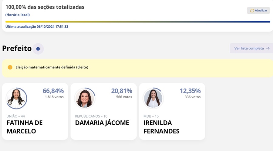 A candidata do União Brasil conquistou a preferência dos eleitores em uma disputa marcada por propostas voltadas ao desenvolvimento local e ao bem-estar da população.