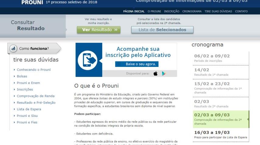 Os estudantes que aguardam o resultado da segunda chamada do Programa Universidade para Todos (ProUni) já podem conferir a lista dos pré-selecionados no site do programa. O resultado foi divulgado na tarde desta sexta-feira (2/3).