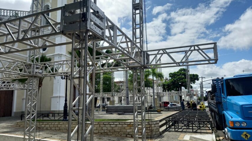 Montagem da estrutura do espetáculo “Chuva de Bala” é iniciada