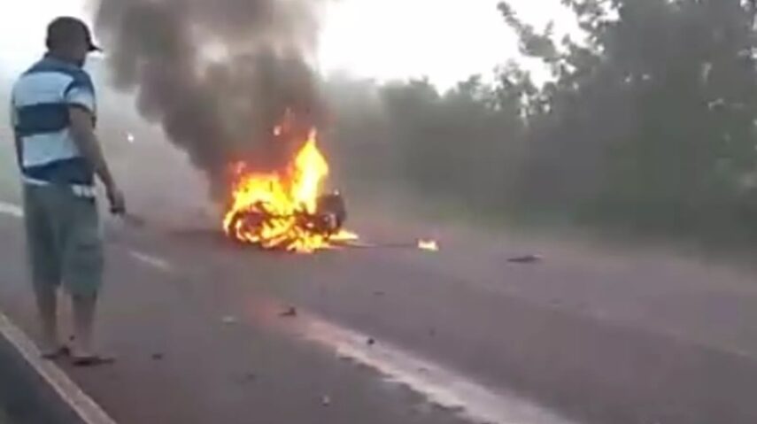 Segundo informações da Polícia Rodoviária Federal (PRF), com o impacto da batida, o condutor da moto foi arremessado na pista. A motocicleta pegou fogo e o trânsito ficou parado no local.