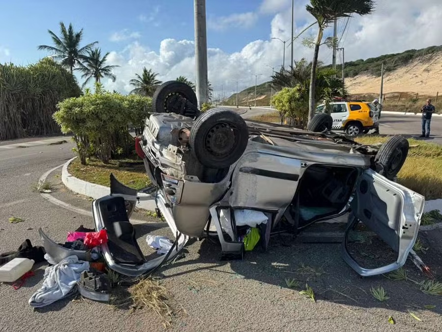 Um motorista ficou ferido após capotar o carro na Via Costeira, em Natal, na manhã desta sexta-feira (24). O acidente aconteceu por volta das 6h, nas proximidades do antigo hotel da BRA, no sentido Mãe Luíza.