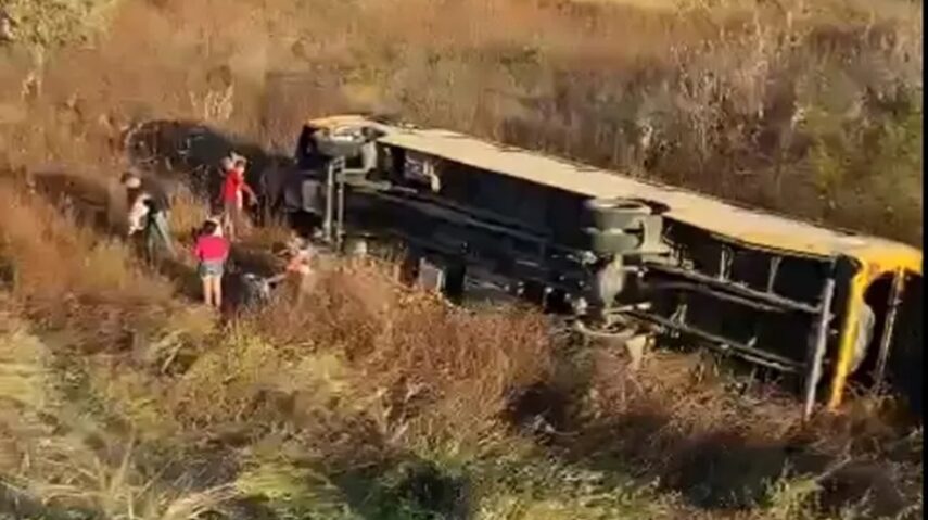 O ônibus desceu um barranco após o motorista perder o controle próximo a um trevo da rodovia. Antes da chegada das unidades de saúde de emergência, populares auxiliaram na retirada das pessoas do veículo.