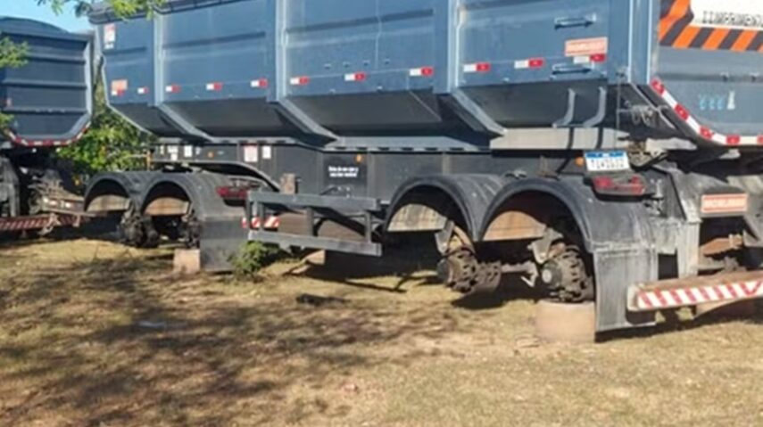 Após a abordagem, os funcionários foram levados, junto com os dois veículos, para uma área de mata nas proximidades de Itajá, onde os suspeitos retiraram os pneus das carretas.
