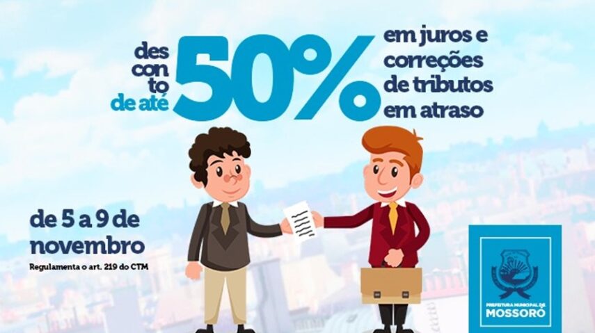 De 5 a 9 de novembro, a Prefeitura de Mossoró estará presente na Semana Nacional de Conciliação do Poder Judiciário. Durante toda essa semana o município vai conceder descontos de até 50% nos juros e correções monetárias dos tributos municipais. A negociação pretende solucionar a situação de contribuintes que possuem dívidas em fase de execução.